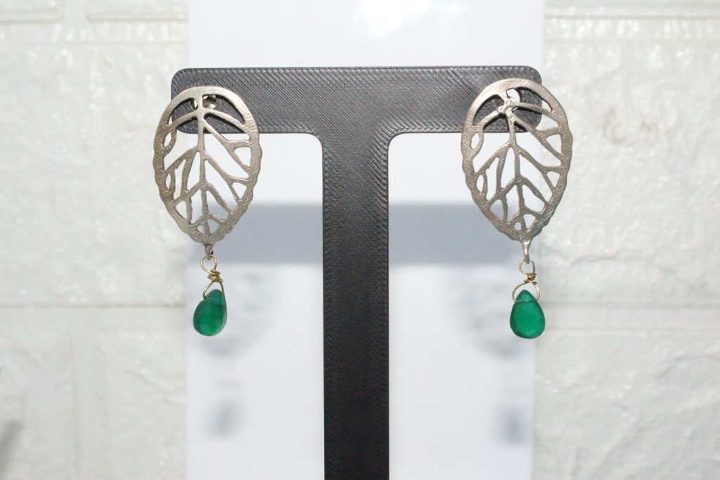 Ασημένια Σκουλαρίκια χειροποίητα απο το Precious Storiew Jewels με πανέμορφο σχέδιο και πράσινους ημηπολύτιμους λύθους!
